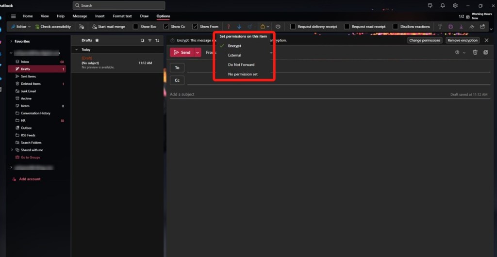 Method 1: Encrypt Emails in Outlook App via Options Tab